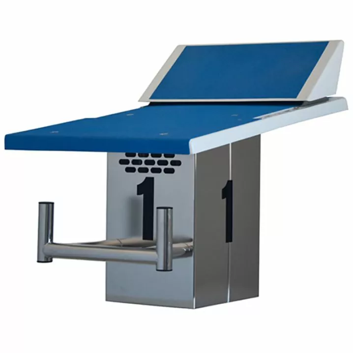 Платформа з протиковзким покриттям, розміром 740x520 мм. Висота тумби - 400 мм. Нумерація нанесена з 4 сторін для зручності плавців.