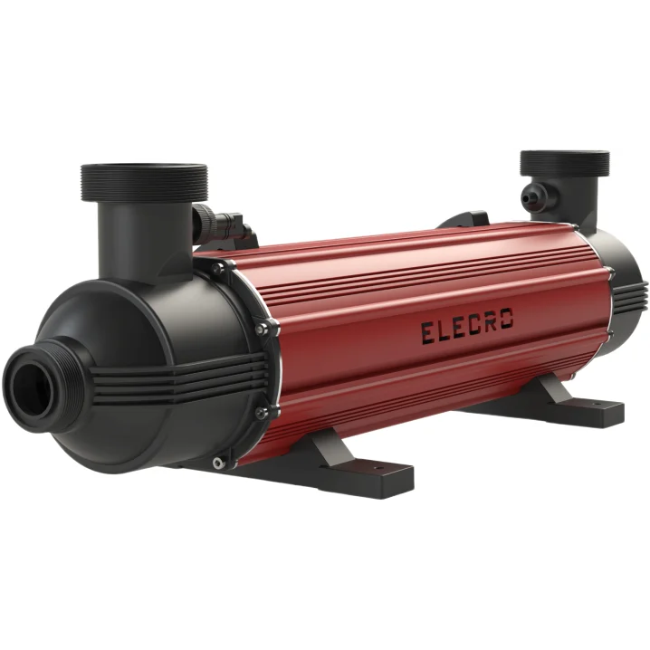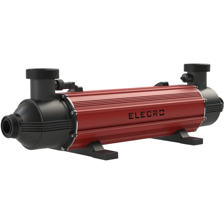 Ефективний теплообмінник призначений для нагрівання та охолодження води в комерційних басейнах. Завдяки 85 крученим трубкам, він забезпечує швидке нагрівання, підсилюючи перемішування води. Титанові трубки стійкі до корозії, підходять навіть для морської води.
