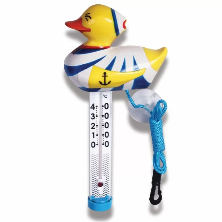Термометр Kokido TM08CB/18 Качка Моряк виконана з високоміцного литтєвого пластику та гуми. Оснащений кріпильним шнуром і присоскою, за допомогою яких ви можете прикріпити його до сходів або стін басейну. Має одну шкалу – Цельсія. Не містить фталатів.