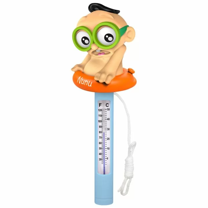 Дитячий Термометр Kokido TM11DIS Amicables Nunu з високоякісного пластику та гуми – безпечний помічник для вимірювання температури води. Завдяки міцному шнуру, надійно кріпиться до стінки басейну або сходів. Має дві шкали виміру – Цельсія та Фаренгейта. Не містить фталатів.