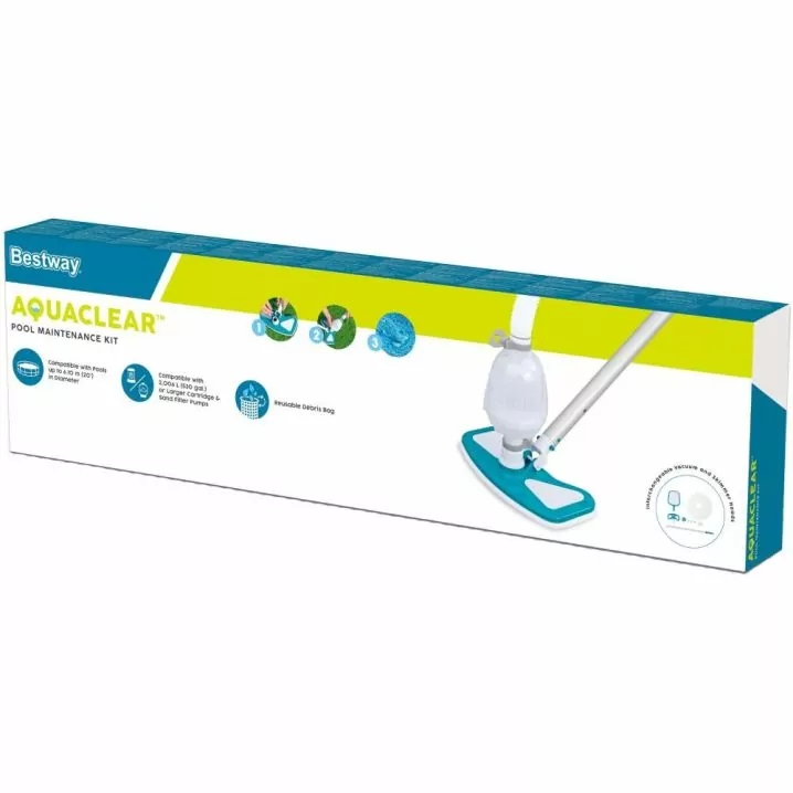 Комплект підходить для очищення дна та стін, каркасних та надувних басейнів. Діаметр шлангу 32мм. Збиральний комплект Pool+: