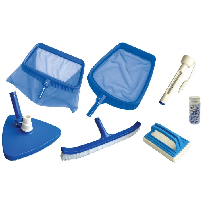 У наборі: Трикутна щітка для дна Kokido K048 під пилососЩітка для стін Kokido K166Посилений донний сачок з мішком Kokido K065 без ручкиПоверхневий сачок Kokido K066 без ручкиЩітка-губка для стін Kokido K077Таблеточний тестер Kokido K020 для вимірювання pH і ClТермометр Kokido K084