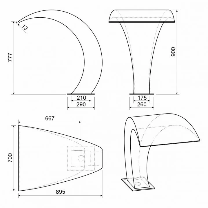 Стійкий до корозії та ультрафіолету. Висота: 900 мм, Ширина сопла: 500 мм.