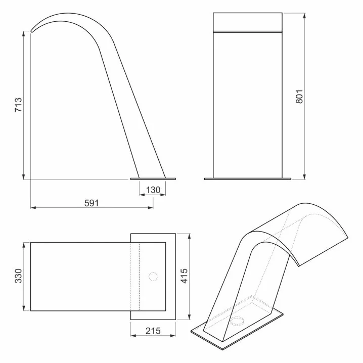 Виготовлений з нержавіючої сталі AISI 316, що забезпечує стійкість до корозії, ультрафіолету та хімічних впливів. Розміщення: на борт басейну. Висота: 800 мм, Ширина: 330 мм.