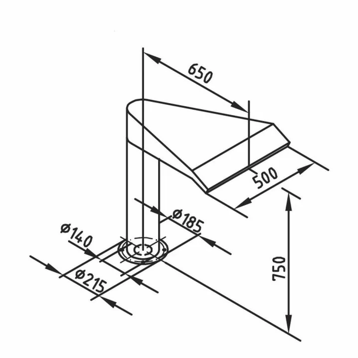 Виготовлений з нержавіючої сталі AISI 316, що забезпечує стійкість до корозії, ультрафіолету та хімічних реагентів. Розміри: 750 мм висота, 500 мм ширина сопла.