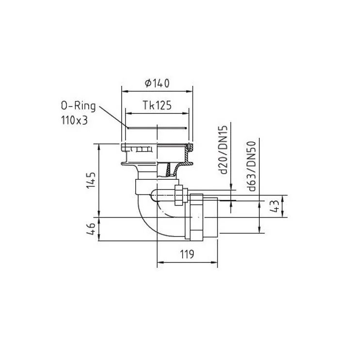 Під'єднання води: 63 мм (під клей)