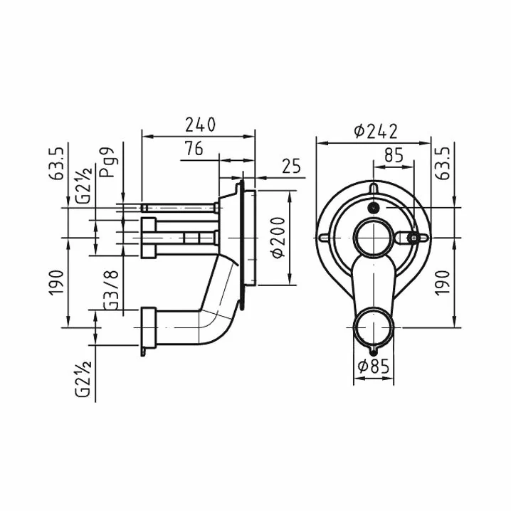 Виготовлений із бронзи Rg5, матеріал стійкий до корозії, ультрафіолету та хімічних реагентів. Монтажна глибина: 240 мм.