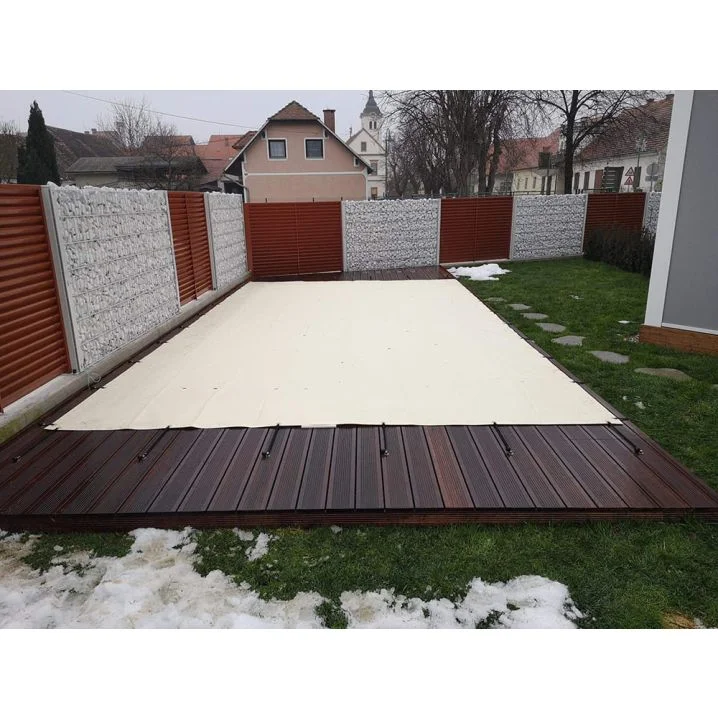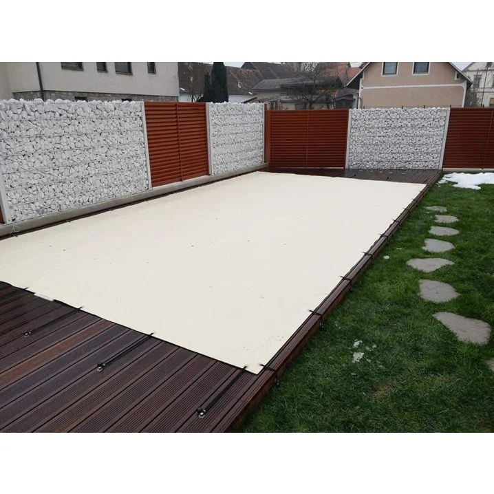 Захисне накриття для басейну – ідеальне рішення для будь-якого сезону. Виготовлене з антибактеріальної ПВХ-тканини щільністю 580 г/м², відповідає стандарту NF P 90-308. Це компактна альтернатива ролетам, легко встановлюється та зберігається.