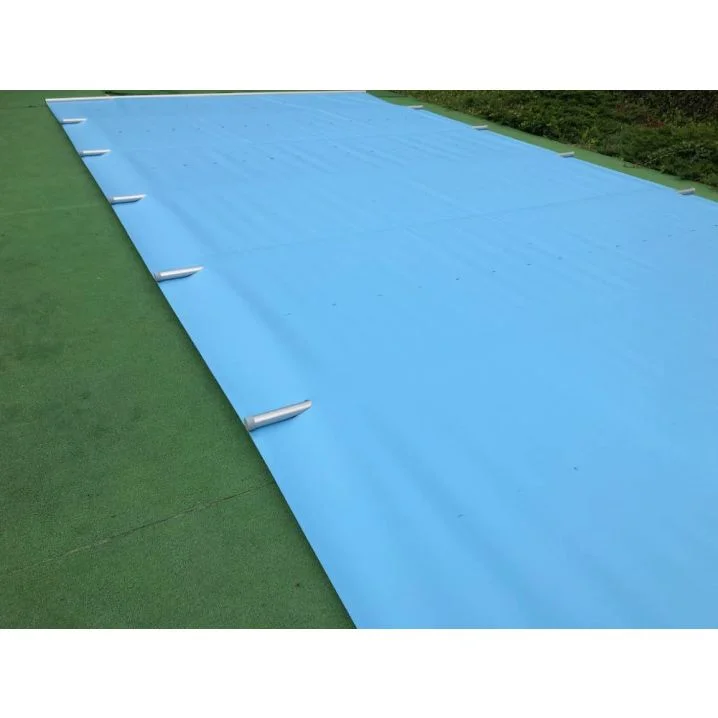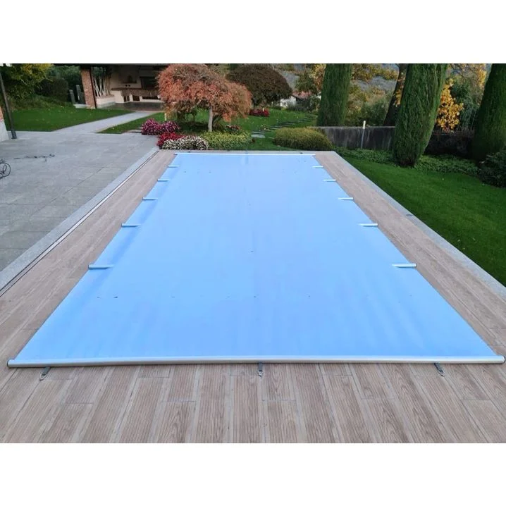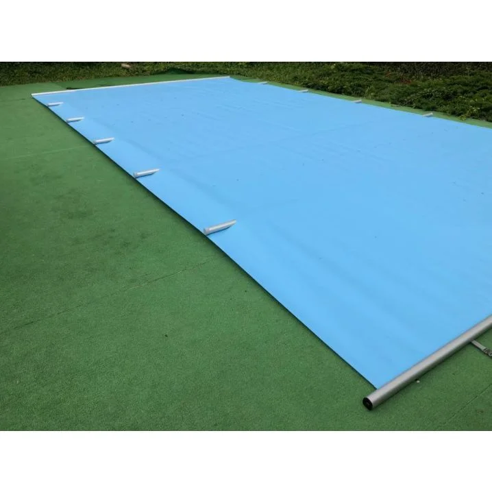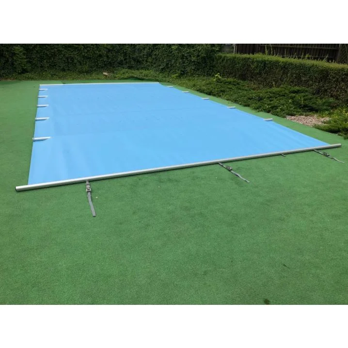 Це накриття для басейну виготовлене з антибактеріальної ПВХ-тканини щільністю 580 г/м², що забезпечує високу якість і довговічність. Воно відповідає європейському стандарту безпеки NF P 90-308 та є економічною альтернативою ролетам.
